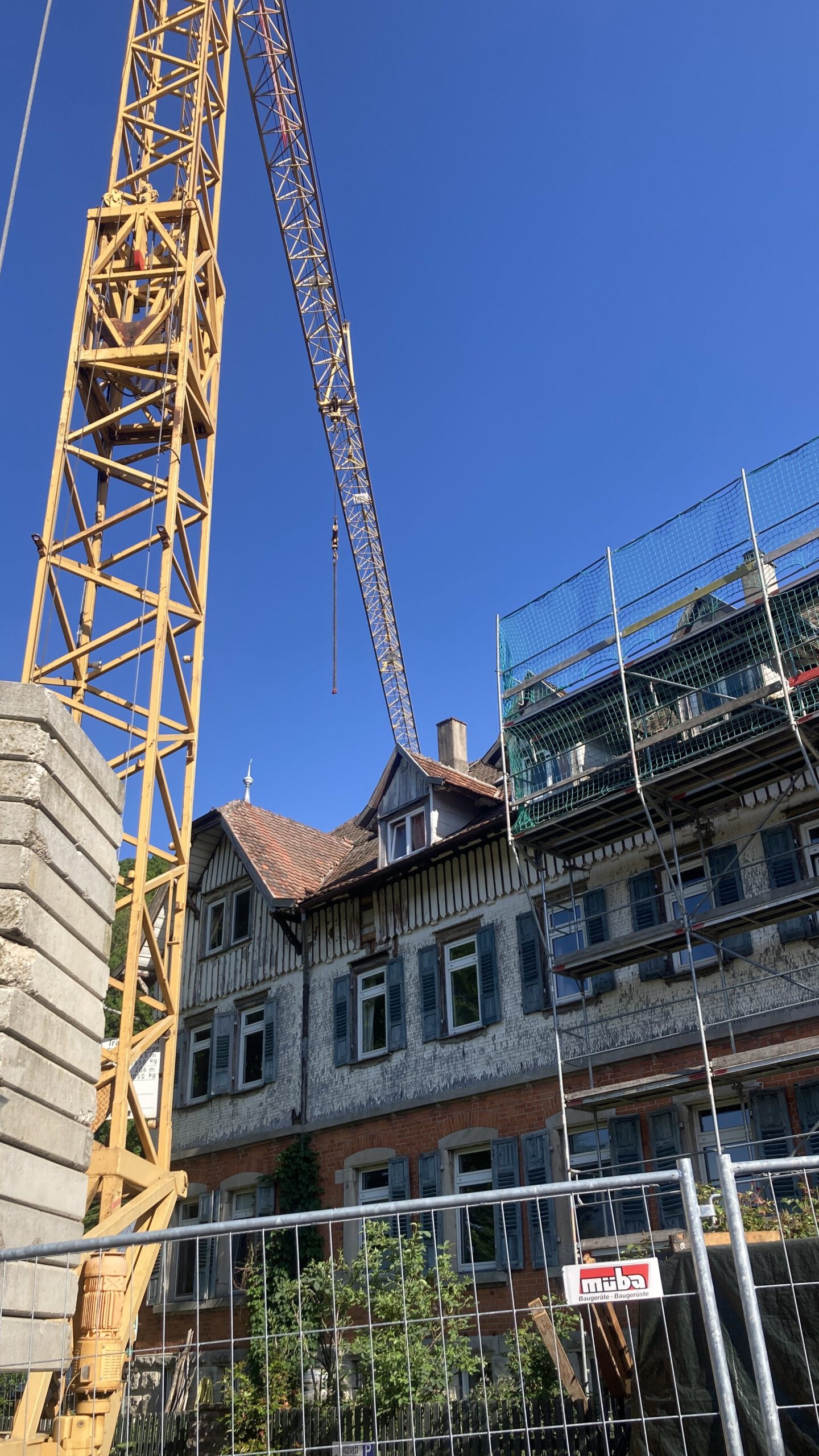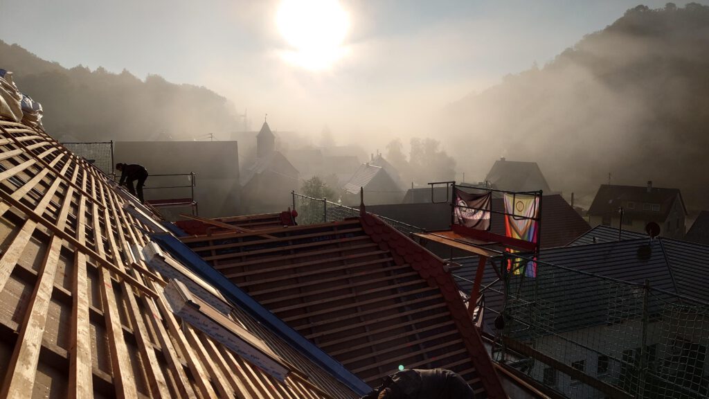 Aktuell: Die Fassade wurde aufgrund des Wetters auf 2026 verschoben, wir werden also voraussichtlich auch nächstes Jahr noch am Bauen sein. Unsere tolle Baucrew wird sich, nach Vollendung der Dachsanierung, in eine wohlverdiente Winterpause verabschieden, um dann voller Energie wieder ins nächste Jahr starten zu können.