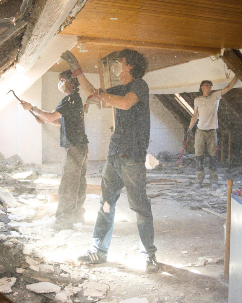 In der kommenden Woche werden wieder ca. 15 Bauhelfer*innen mit anpacken. All das wird meisterhaft von Tomas Bittger und Sternia organisiert und koordiniert. In der darauffolgenden Woche kommen dann die Firmen hinzu, die den Dachstuhl sanieren und die Ziegel neu decken.